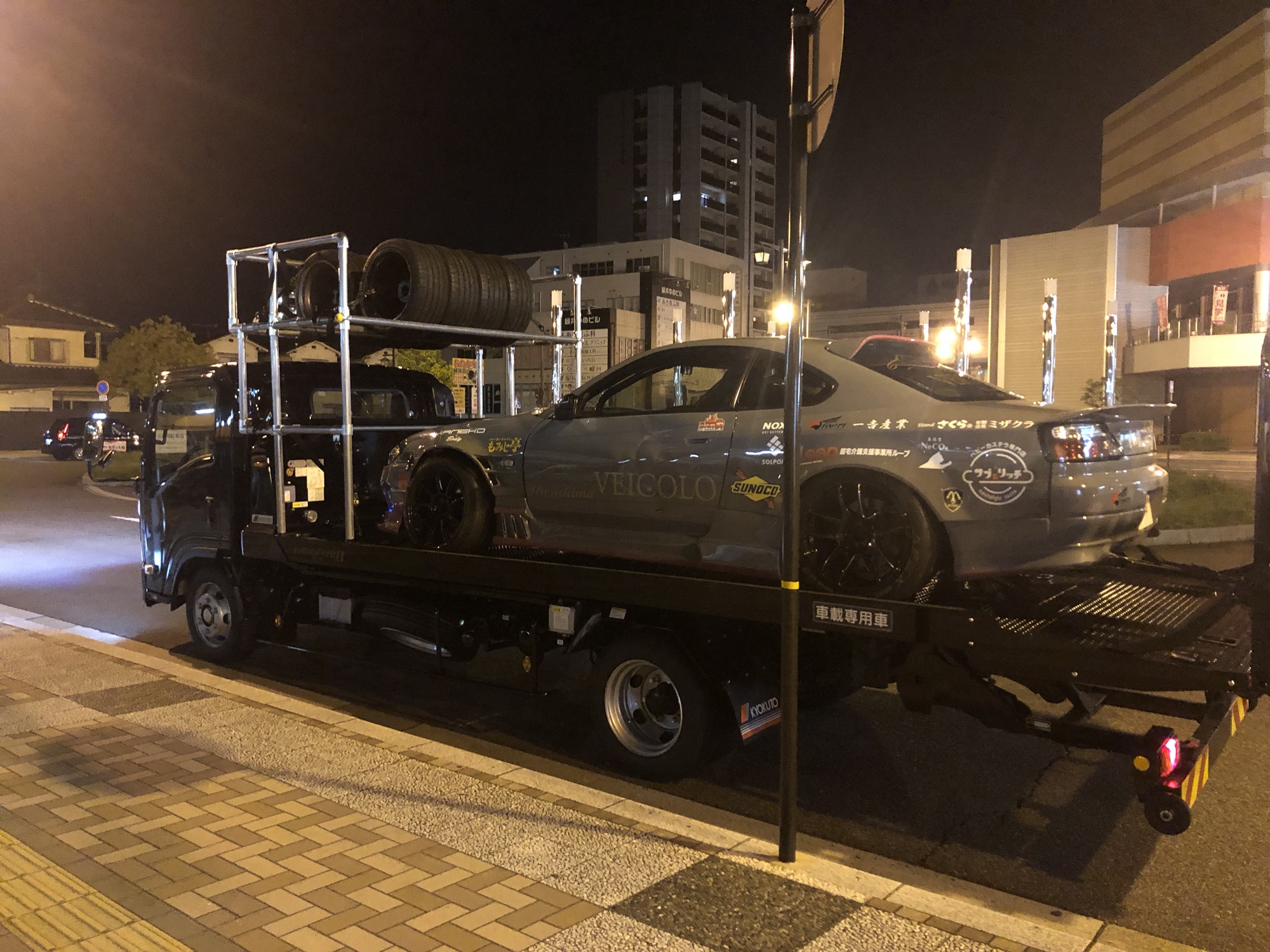 多めにタイヤ、ホイールを持って行くので今回は専用のタイヤラックを組み付けて出発します‼️
